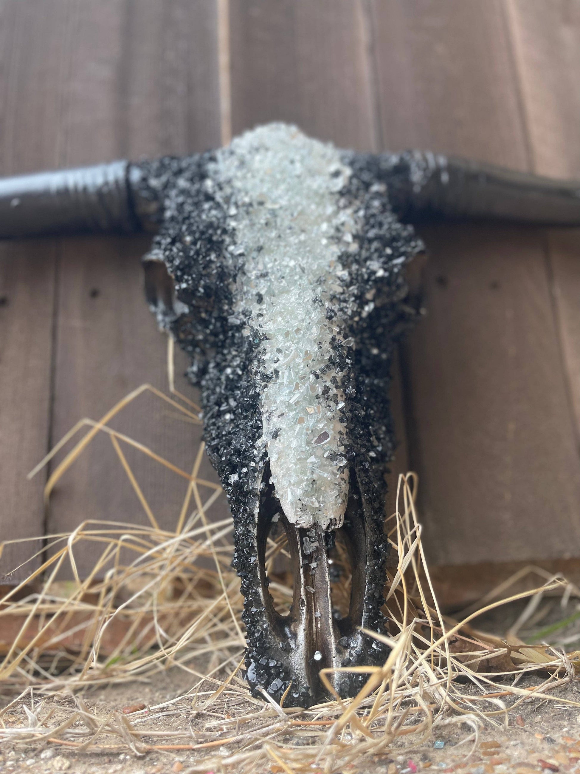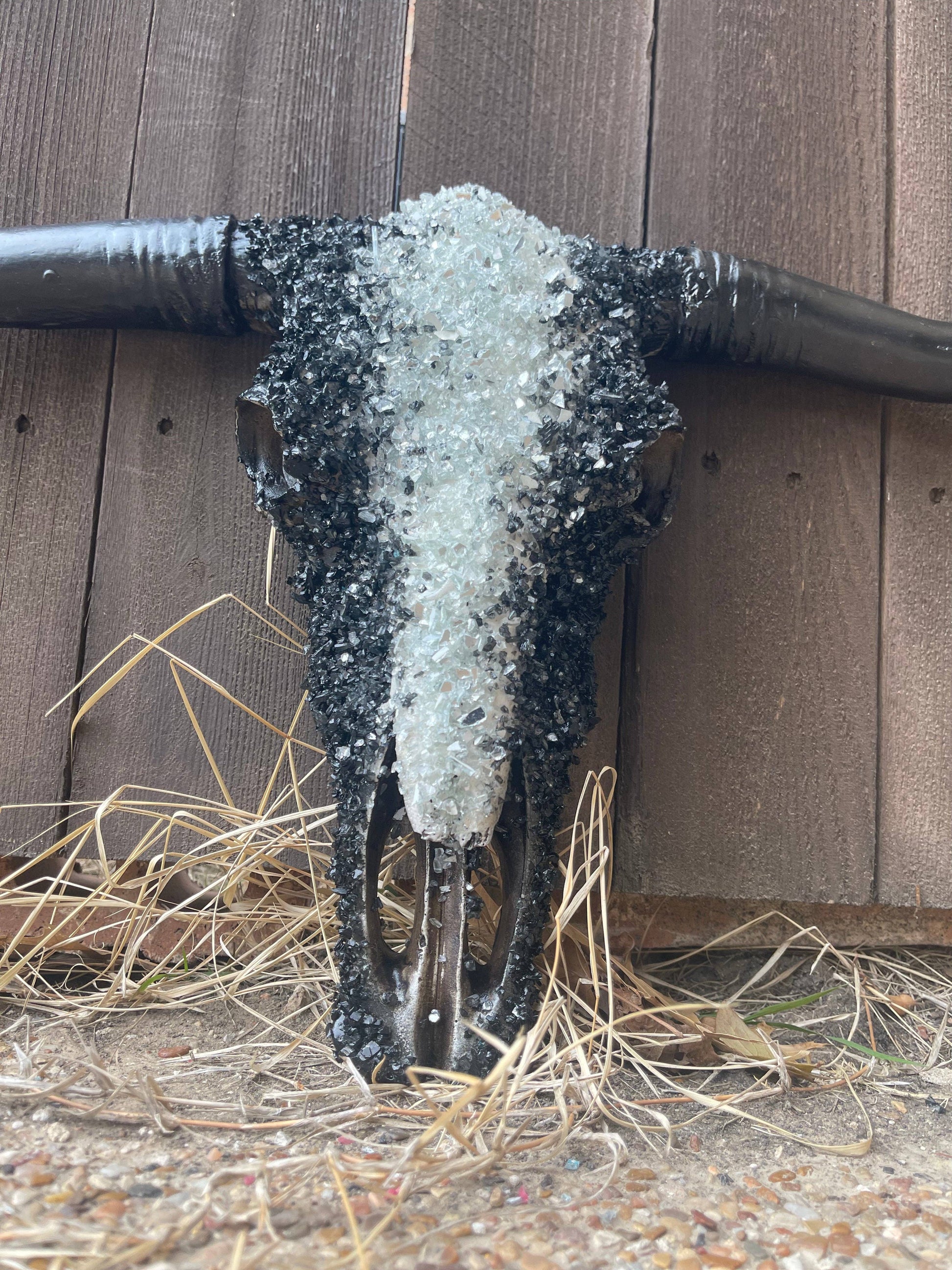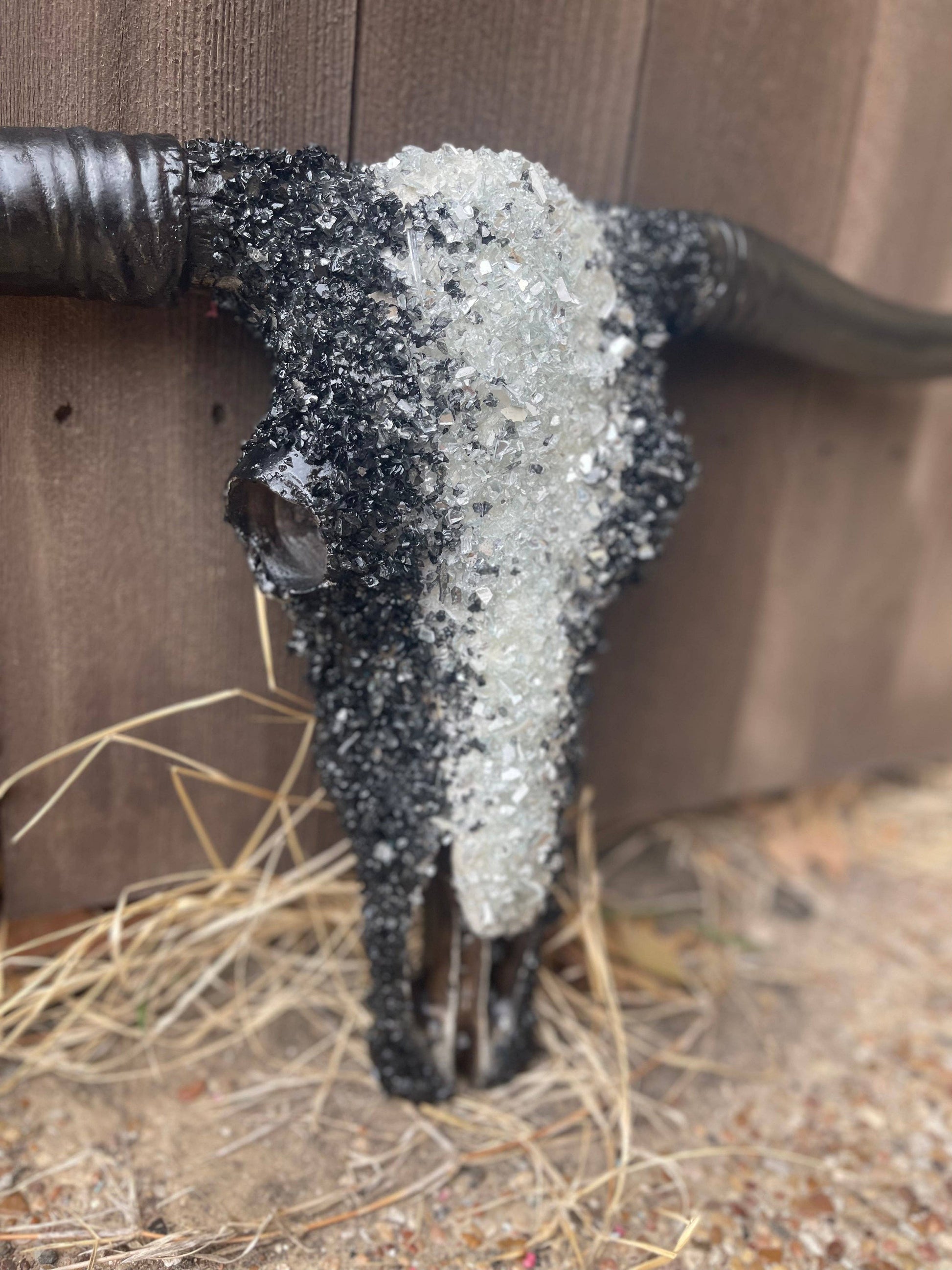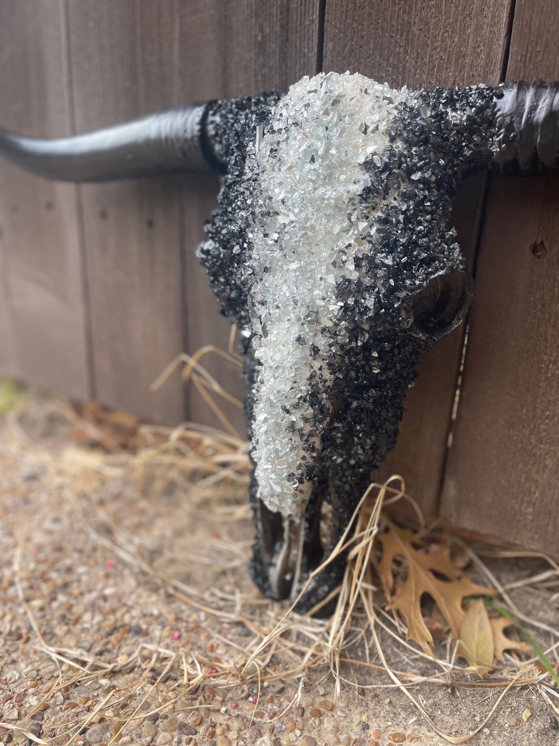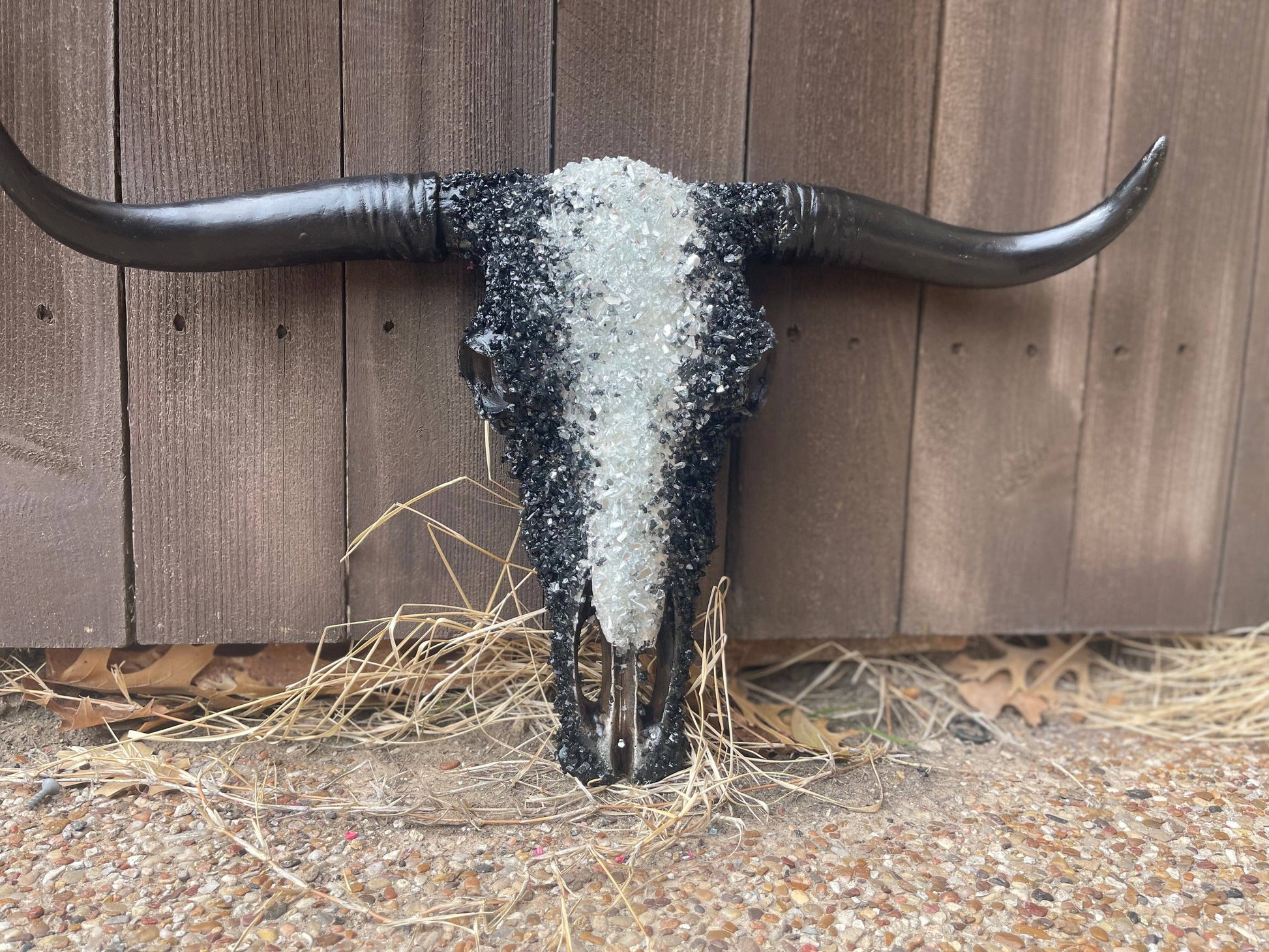 Expertly hand painted, this 20x12" resin cow skull exudes a rugged and unique charm. A durable claw tooth hanger on the back makes for easy hanging.
