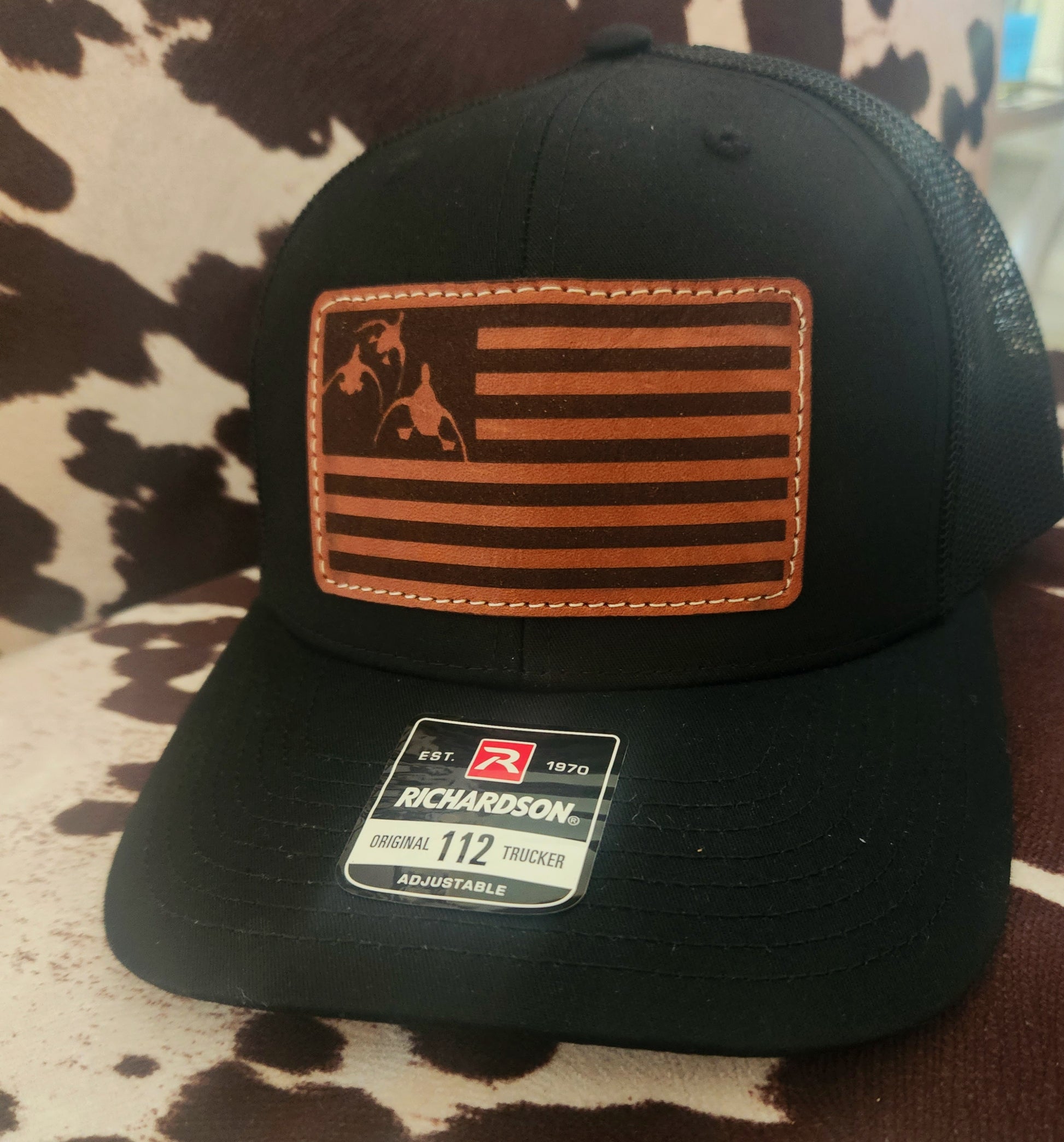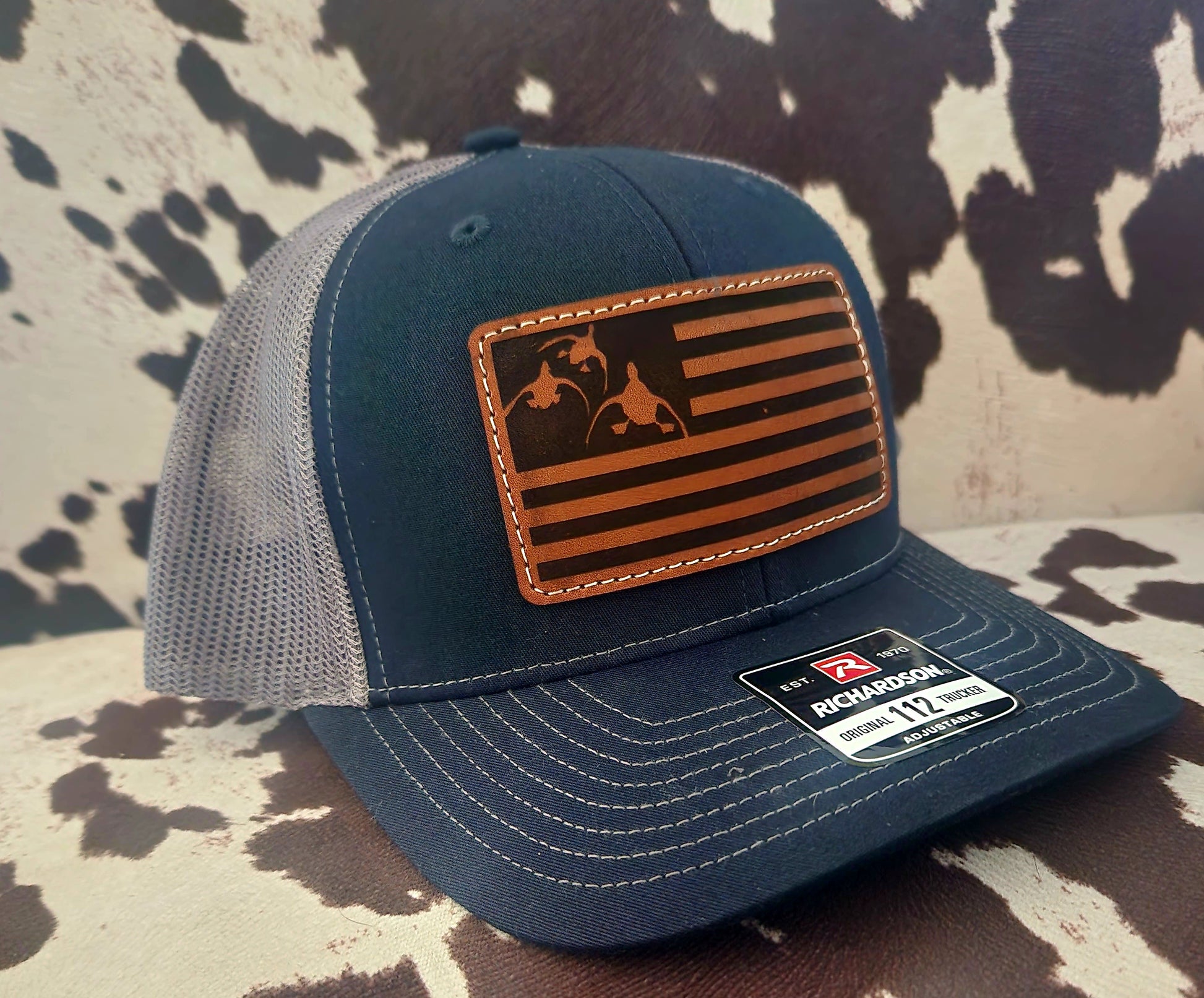 Fine Leather Patch Hat with Three Ducks Flag Design Richardson Hat